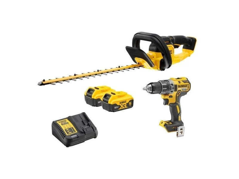 DEWALT Akkus sövényvágó + DCD791 fúrócsavarozó (2 x 5,0 Ah akku + töltő)