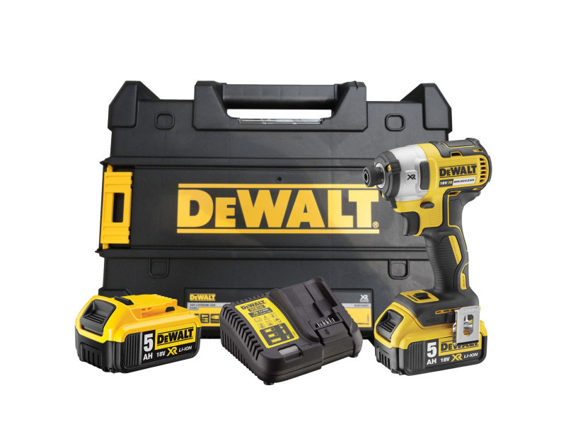 DEWALT Akkus ütvecsavarozó 18 V 205 Nm 1/4" szénkefe nélküli (2 x 5,0 Ah akku + töltő) DCF887P2
