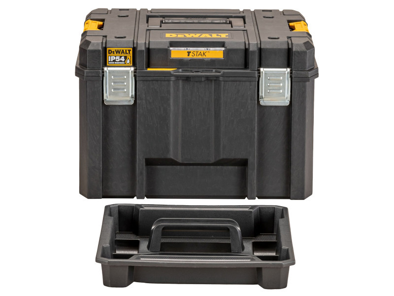 Lakattal ZÁRHATÓ (nem tartozék) A fokozott biztonság érdekében. NEHÉZ FÉM ELSŐ RETESZEK – erős, a tartós és hosszú élettartamú. FÉM CSAPSZEGES OLDAL RETESZEK – a TSTAK modulok összekapcsolásához. A fém csapszegek hosszú élettartamot biztosítanak. IP54 WATERSEAL – Víz- és porvédelmet biztosít a dobozban lévő szerszámoknak és rögzítőknek. DEWALT TRACKER READY – A TSTAK dobozba beépített rögzítési pont lehetővé teszi a DEWALT Tracker telepítését és a doboz nyomon követését a DEWALT Tool Connect segítségével. FÉL MÉRETŰ BELSŐ TÁLCA A kulcsfontosságú kéziszerszámokhoz, rögzítők és elektromos szerszámtartozékokhoz való könnyű hozzáférésért. 30 kg-ig terhelhető
