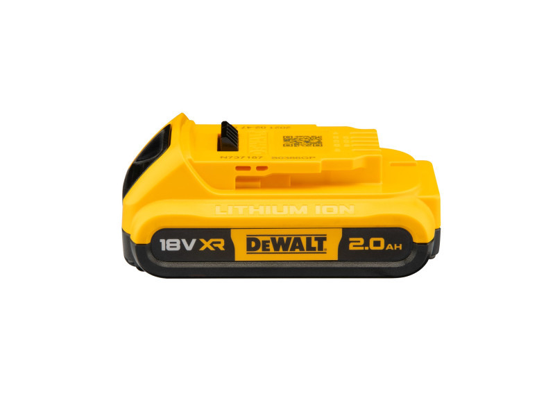 DEWALT XR 2,0Ah Li-Ion technológia megnövelt üzemidőt és optimális teljesítményt biztosít a feladatok elvégzéséhez.