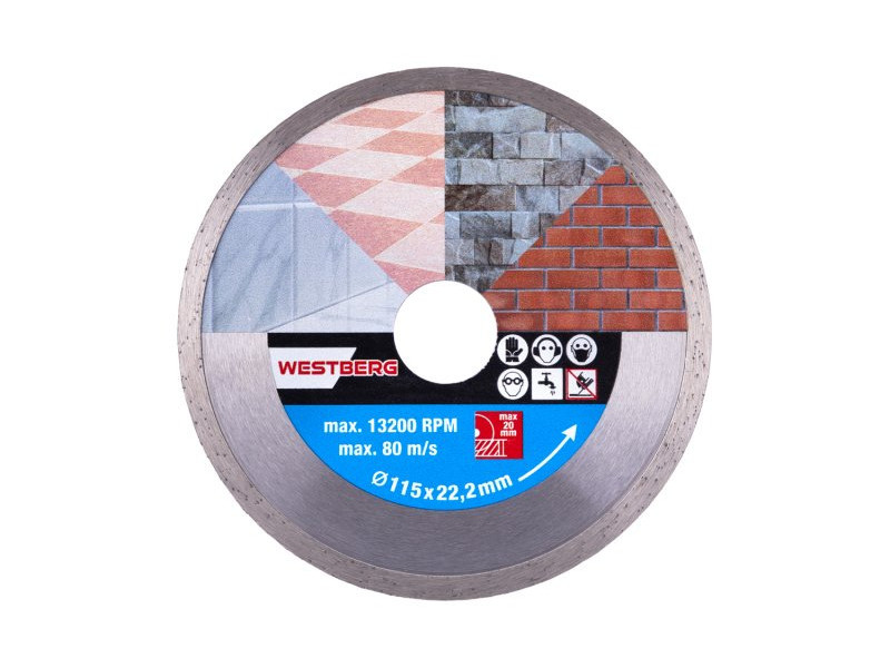 Gyémánt tárcsa DIAMANT, kivitel: FULL - minden körben kiváló minőségű gyémántréteg magas gyémántpor tartalommal, precíz megmunkálás - csatlakozás a tárcsa tartótárcsájához magas hőmérsékletnek ellenáll, felhasználás: nedves és száraz vágáshoz burkolat és burkolás, beton, tégla, falazat, gránit, márvány, kő, üveg, kerámia, csomagolás: eurólyukkal ellátott buborékfólia, mellékelt szűkítő gyűrű 22,2-20 mm, méretek: a termék megnevezésében feltüntetve.