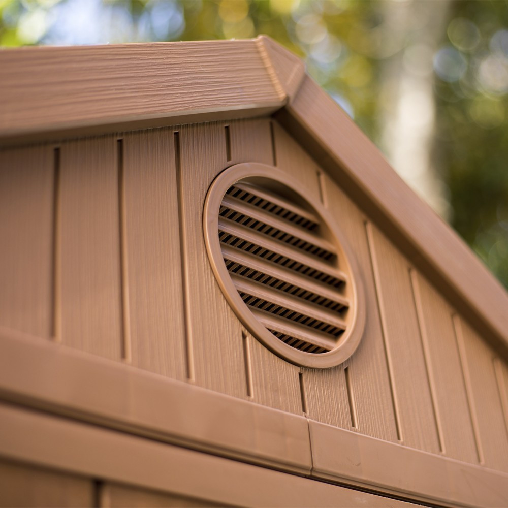 A Keter Darwing 4x6 kertház egy rögzített ablakkal felszerelt modell, amely természetes megvilágítást biztosít a felhasználó számára. Az ablakot a négy hely egyikébe lehet telepíteni, amelyek közül választhat a telepítés során.A Keter Darwin 4x6 rendelkezik egy szellőzőnyílás is, amely légkeringést biztosít a tárolt tárgyak nedvességtől való védelme érdekében.