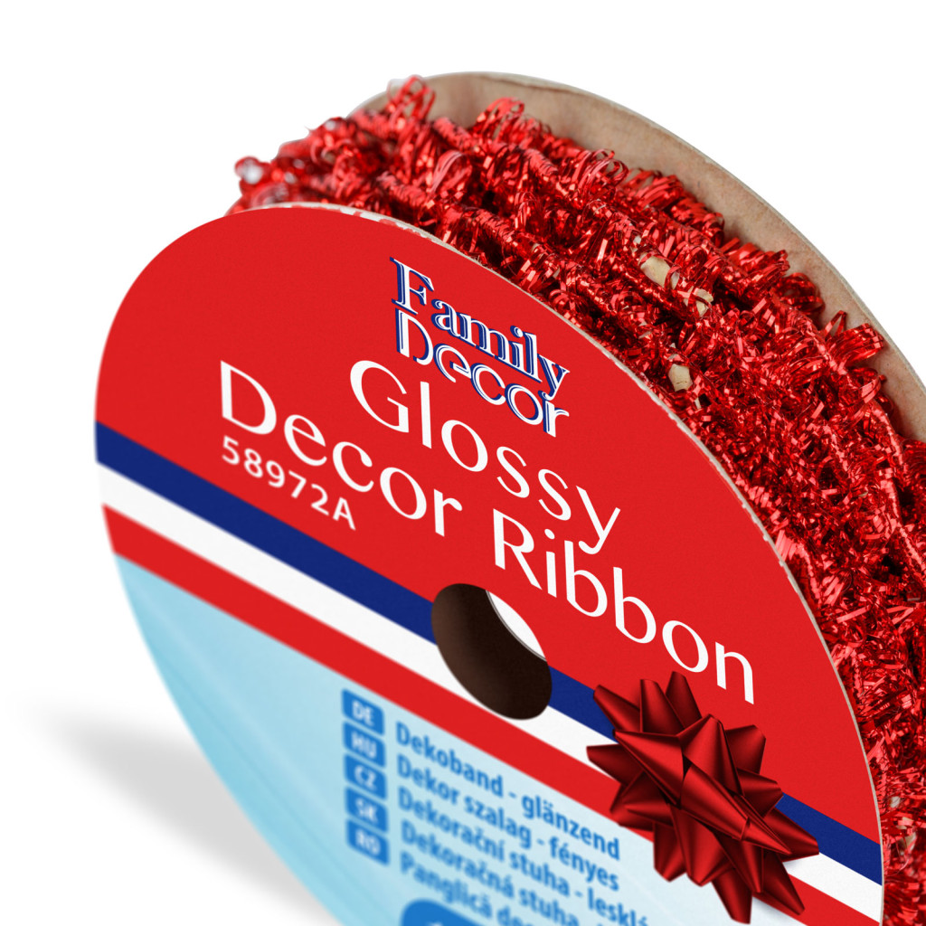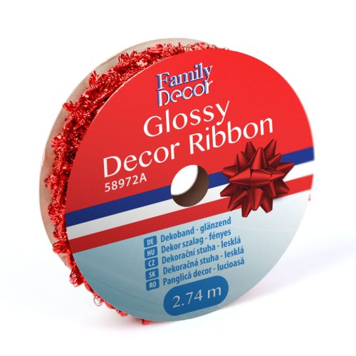 Dekor szalag - fényes - 2,74 m - piros