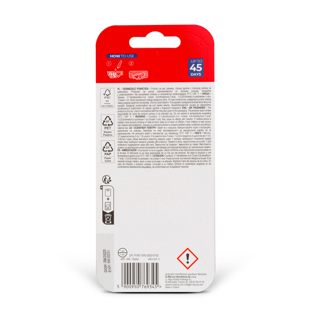 Az autóillatosító egyszerű és hatékony megoldást kínál járműve utasterének felfrissítésére. Kellemes illatot biztosít, miközben segít semlegesíteni a kellemetlen szagokat, például a dohányfüst vagy az ételszag okozta kellemetlenségeket. Kompakt kialakításának köszönhetően diszkréten elhelyezhető az autóban, így friss és kellemes légkört teremt minden utazás során. Ideális választás mindennapi használatra, ha szeretné, hogy autójában mindig tiszta és kellemes illat fogadja.