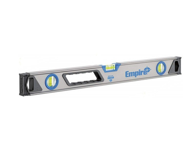Az Empire alumínium vízmérték strapabíró kerettel rendelkezik, precízen mart élekkel, amelyek biztosítják a mérési pontosságot. 3 nagy kontrasztú akril libellával van felszerelve, amelyek 360°-os szögben láthatók. A libella láthatóságát az ablakok kontrasztos keretezése is növeli, amely a teljes keret hátterében kiemelkedik. Az Empire vízmérték nagy teherbírású zárókupakokkal is fel van szerelve, amelyek további védelmet nyújtanak a keretnek és a libelláknak ütközés esetén. A használat kényelmét növelik a profilozott fogantyúk, amelyek megkönnyítik az eszköz szállítását.
