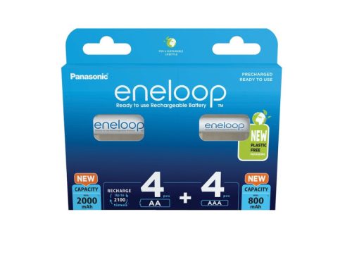 • Azonnal használható, előre feltöltött NiMH akkumulátor• Mérete: AA/ceruza; kapacitása 2000 mAh AAA/micro; kapacitása: 800 mAh• 2100 alkalommal újratölthető• Más, jó minőségű akkumulátorokkal összehasonlítva, 10 év eltelte után is, ha nem használták, energiája 70%-át megtartja, és nem igényel időszakos újra töltést. A készülékek mindig használhatók lesznek, függetlenül attól, hogy az eneloop mikor lett feltöltve. Mi az eneloop? Az eneloop egy hosszú élettartamú, előre feltöltött, újratölthető és újrahasznosítható, energia- és pénzkímélő akkumulátor, amelyet akár 2 100-szor is le lehet meríteni és újra lehet tölteni. Használatra kész, alacsony önkisülésselAz előtöltött eneloop akkumulátorok megvásárlás után azonnal használhatók. Nincs szükség a feltöltésükre az első használatuk előtt. Míg más, nem használatra kész újratölthető akkumulátorok a tárolás során elveszítik töltöttségüket, a PANASONIC eneloop technológiája lehetővé teszi, hogy ezek az akkumulátorok 10 évig megőrizzék töltöttségük 70%-át.Nagy teljesítményű akkumulátorAz eneloop egyik fő jellemzője a magasabb feszültségszint. Sok eszköz kikapcsol, vagy alacsony töltöttséget jelez, ha a feszültség 1,1 V alá esik. A hagyományos Ni-MH akkumulátorok folyamatosan veszítenek feszültségükből, és hamar a kritikus szint alá esnek. Az eneloop feszültsége ezzel szemben tartósan 1,1 V felett marad, és csak közvetlenül az akkumulátor lemerülése előtt csökken az 1,1 V-os küszöb alá. Ez az egyik oka annak, amiért az enelooppal több fénykép készíthető.Alacsony hőmérsékleten is használhatóAz eneloop 0°C-os hőmérsékleten is kiváló teljesítményt nyújt, de akár -20°C-on is használható, és önkisülésének mértéke kifejezetten alacsony hőmérsékleten (-20°C-on) sem nő meg. Az üzemidő valamelyest rövidebb lesz ahhoz képest, mintha szobahőmérsékleten használná az akkumulátort.Gazdasági előnyökBár az újratölthető akkumulátorok kezdeti költsége magas, az eneloop ára néhány újratöltési ciklus után megtérül, a hosszú távú megtakarítás pedig jelentős mértékű. Az eneloop akkumulátorok akár 2 100-szor is újratölthetők.KörnyezetbarátBecslések szerint a múlt év során több mint 40 milliárd szárazelemet dobtak ki világszerte. Az eneloop újratölthető akkumulátorok megújuló energiaforrást képviselnek, és akár 2 100-szor is újra lehet őket tölteni! Az eneloop újratölthető akkumulátorok használata segít csökkenteni a keletkező hulladék mennyiségét, így hozzájárul a környezet védelméhez.