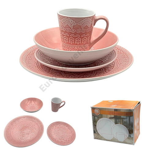 ÉTKÉSZLET RÓZSASZÍN 16 DB-OS 1/2