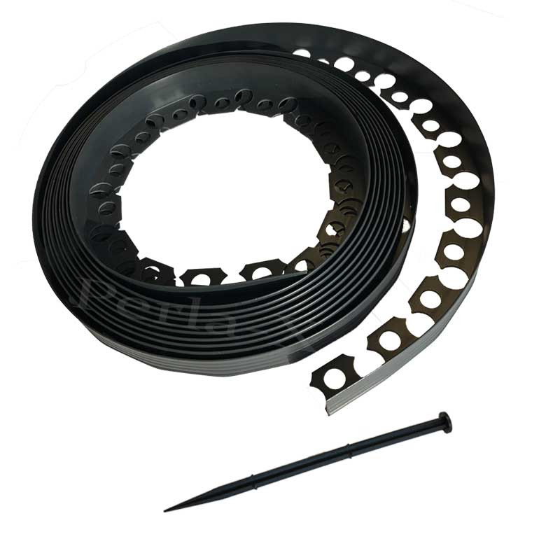 Elasztikus gyepszegély FEKETE/SZÜRKE 3,8cmx10m 20db leszúrótüskével