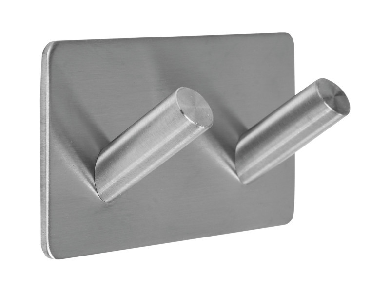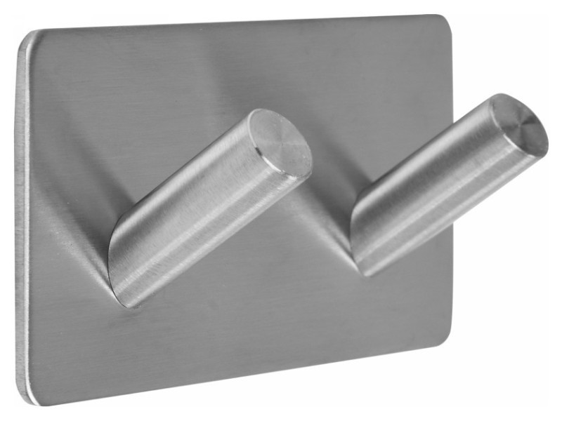 Kettős akasztó a Steely kollekcióból, masszív, kefélt 304-es rozsdamentes acélból készült. Tökéletesen kiegészíti a modern fürdőszobák és konyhák dekorációját, praktikus kiegészítő a bejárati előszobában és öltözőben is. A nagyon tartós  3M kétoldalú szalagnak köszönhetően fúrás nélkül rögzíthető a falra.