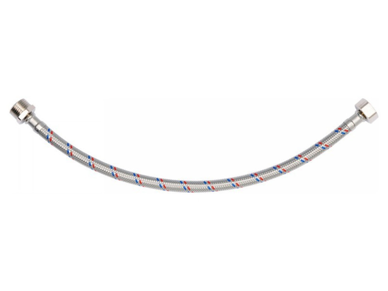 Rugalmas csatlakozócső csaptelepekhez rozsdamentes acélból szőtt. Meleg és hideg vízhez tervezték.