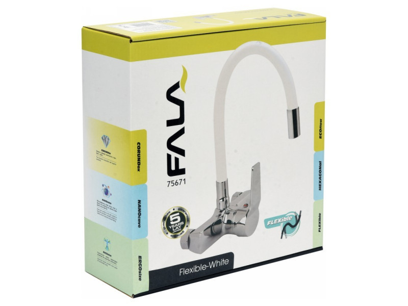FALA Mosogató csaptelep fali fehér flexibilis csővel + tartozékok