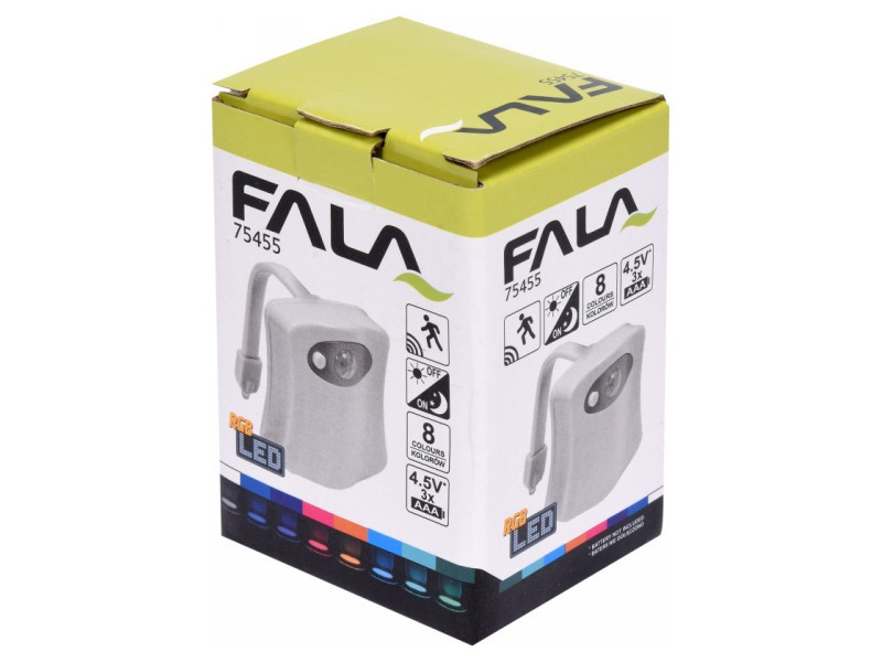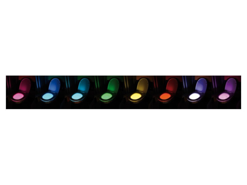 WC világítás okos módszer a hangulatvilágításra a WC-ben. Lehetővé teszi a WC használatát fővilágítás bekapcsolása nélkül. A kis méretű RGB LED világítja meg a WC-t belülről, változó színekkel. Állítható is egy állandó (a rendelkezésre álló 8 világítási szín közül) szín is. A beépített mozgásérzékelőnek köszönhetően a lámpa automatikusan beindul, ha megközelíted (hatótávolság 3 méter). Ahhoz, hogy ne merüljenek le feleslegesen az elemek (teljesítmény: 3xAAA; nem tartozék), a beépített fényérzékelő biztosítja, hogy a fény csak a WC-ben uralkodó sötétségben aktiválódjon. A szerelése rendkívül könnyű (mint egy frissítő WC kocka) és nem igényel szerszámokat. A rugalmas zsinórnak köszönhetően a fény bármilyen WC-be beilleszthető. A test éjszakai megvilágításának kitettsége jelentősen csökkenti a melatonin szintjét a szervezetben, amely az alvásért felelős, így ennek a kis eszköznek köszönhetően az éjszakai fiziológiai szükséglet nem fogja felébreszteni a háztartásban élőket és könnyen újra el tudnak aludni. Alkalmazás/CélWC-k - függesztett, álló, kompakt WC-k