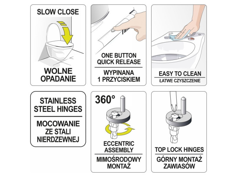 4. a excentrikus rögzítési beállításnak köszönhetően könnyen illeszkedik a legtöbb WC-csészéhez, mind kompakt, mind fali kivitelben