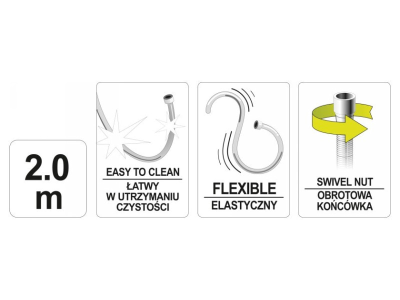 A rendelkezésre álló hosszúságok lehetővé teszik a tökéletes illeszkedést a csaptelephez, biztosítva a kényelmet.