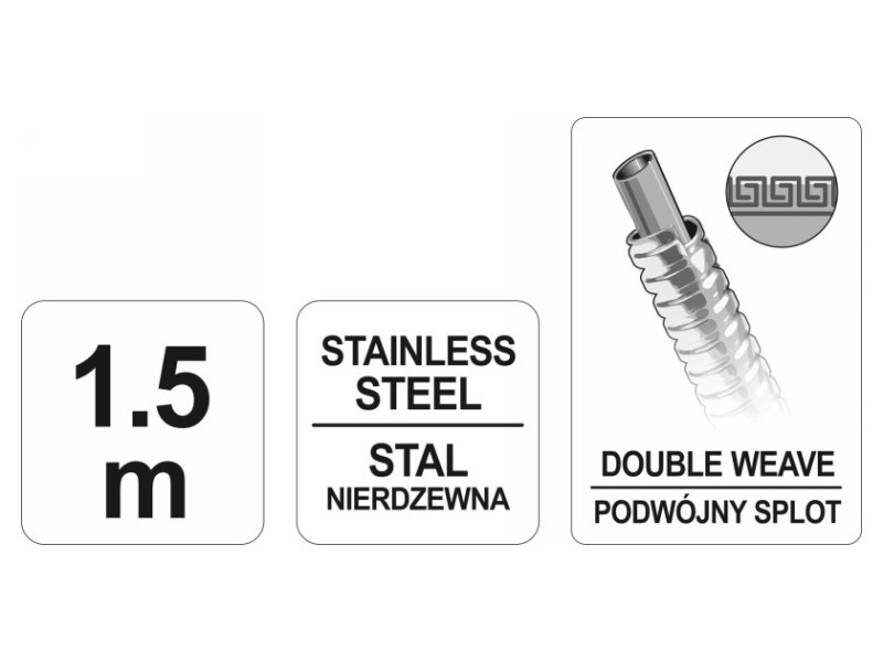 A univerzális Wave zuhanyzócsövek kiegészítik a hiányos zuhany és fürdőcsaptelepet, vagy cserélhetik a sérült csövet. A rendelkezésre álló hosszak lehetővé teszik a tökéletes illeszkedést a csaptelephez, biztosítva a kényelmes használatot. Magas minőségű anyagokból készült. A 75645-ös zuhanyzócső rendelkezik: 1,5 m hosszúság kettős fonás polírozott rozsdamentes acélból készült fonás univerzális anyák G1/2" Paraméterek menet: G1/2" befejezés: polírozott acél anyag: rozsdamentes acél szín: króm cső hossza [cm]: 150