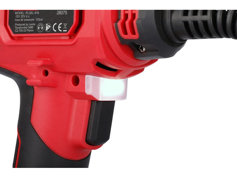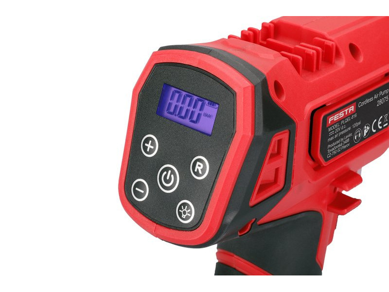 nagy teljesítményű levegőakkumulátor-kompresszor kiegészíti a gépek választékát FESTA POWER x TOOLS és egy akkumulátorrendszer SHARE20 V nyomásbeállítás kPa, bar, PSI-ben, biztosítékkal a kompresszor automatikus leállításához, a beállított nyomás elérésekor - maximális nyomás 8,2 bar kompresszor autók, motorkerékpárok, kerékpárok, kocsik stb. abroncsainak nyomásának ellenőrzésére és feltöltésére, valamint matracok, csónakok vagy labdák felfújására a mellékelt adaptereknek köszönhetően a kompresszor belső legkeményebb alkatrészeinek teljesen fém kialakítása biztosítja a kompresszor nagy teljesítményét és hosszú élettartamát háttérvilágítású kijelző és nagy LED lámpa független kapcsolóval sötétben vagy rossz fényviszonyok között történő munkához a gomb megnyomásával a kompresszor elindul - anélkül, hogy le kellene nyomni -, másrészt a gomb hosszabb ideig tartó nyomva tartása elfordítja a kompresszort be vagy ki! fonott nyomótömlő 60 cm törésvédelemmela csomag egy 12 V-os adaptert tartalmaz 3 m-es kábellelFESTA MEGOSZTÁS 20 V – Az AKU extrudáló pisztoly egy olyan termékcsoport része, amelyhez Li-ion használható b> 2,0 Ah és 4,0 Ah akkumulátorok minden ilyen jelzéssel ellátott gépben A FESTA Power x Tools akkumulátoraiban használt Li-ion technológia lehetőséget kínál az akkumulátorok bármikori újratöltésére – kapacitásuk csökkentése nélkül , a Li-ion akkumulátoroknál szintén csak nagyon lassan önkisülnek akkumulátor és töltő nem tartozék! akkumulátor - 2,0 Ah 28080, 4,0 Ah 28081, töltők - 2, 4 A 28085, 4 A 28086