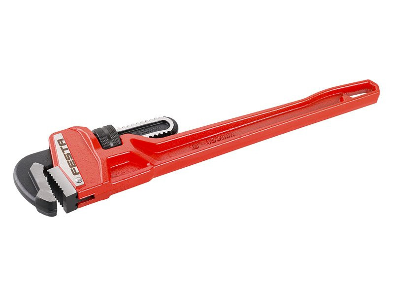 FESTA csavarkulcs 455mm, lapos pofák 90° Hornyolt króm-vanádium acél pofák ellentétesen forgó fogakkal, a pofatávolság gyors és egyszerű beállítása állítóanyával a pofák maximális hatótávolsága 70 mm