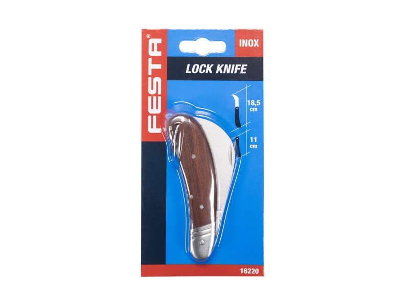 Hasító összecsukható kés, erős rozsdamentes penge, fa nyél kiváló minőségű szegecseléssel, univerzális kerti kés fák és növények oltásához - oltásához - vágásához és vágásához, penge hossza 110 mm, bliszter.