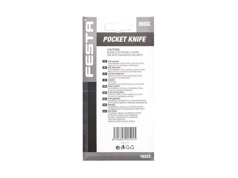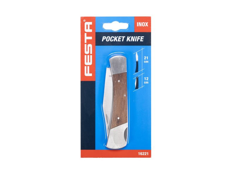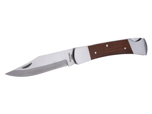 Összecsukható zsebkés zárral a penge véletlen bezáródása ellen, rozsdamentes penge, fa nyél, kiváló minőségű szegecselés, pengehossz 120 mm, buborékfólia.