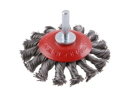 Forgókefe, változat: COPY - szabadalmaztatott huzal 0,5 mm - másolás, extrém terhelés esetén sem bomlik fel, FESTA kefék garantálják a minőségi felhasznált anyagokat és feldolgozást, acélhuzal 0,5 mm, átmérő 75 mm, szár 6 x 30 mm, huzalok száma: 675, huzalhossz: 20 mm, megengedett sebesség: 15000 1/perc, felhasználás: festék, rozsda, sorja, hegesztési maradványok, salak eltávolítása, érdesítés, fém alkatrészek tisztítása, csomagolás: buborékfólia euro lyukkal.