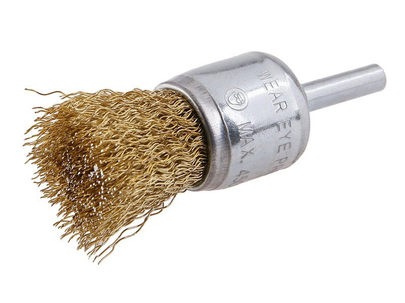 Forgókefe - hullámos, FESTA kefék garantálják a kiváló anyagokat és megmunkálást, huzal 0,3 mm - sárgaréz bevonatú átmérő 25 mm, szár 6 x 20 mm, horganyzott kefetest, huzalok száma: 150, huzal hossza: 20 mm, max. megengedett fordulatszám: 4500 1/perc, felhasználás: könnyű csiszolási munka és tisztítás nehezen hozzáférhető helyeken, csomagolás: eurolyukkal ellátott buborékfólia.
