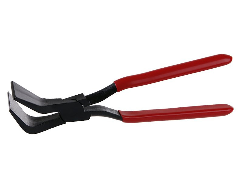 vízvezeték-szerelő fogó kovácsolt - 45° hajlított, pofa szélessége 60 mm kiváló minőségű szénacél, középső kötés, sugárral rendelkező élek - a hajlított anyag sérülése ellen műanyag bevonatú fogantyúk szélesebb profillal a maximális erőeloszlás érdekében az anyag megfogásakor vízszereléshez, tetőfedő munkákhoz, lemezalakításhoz stb.
