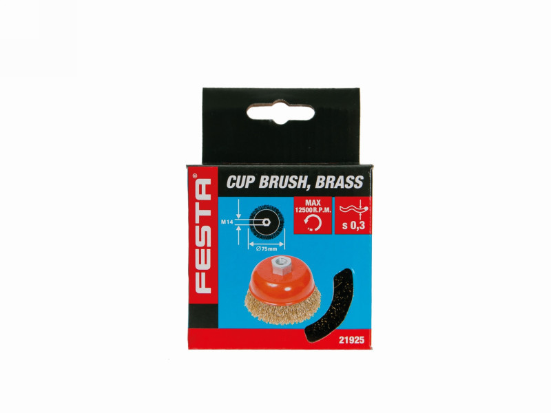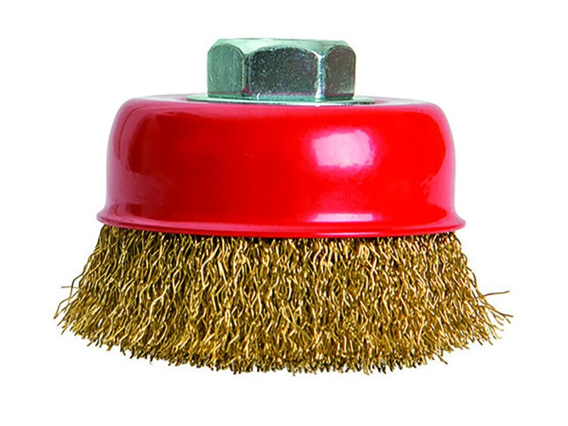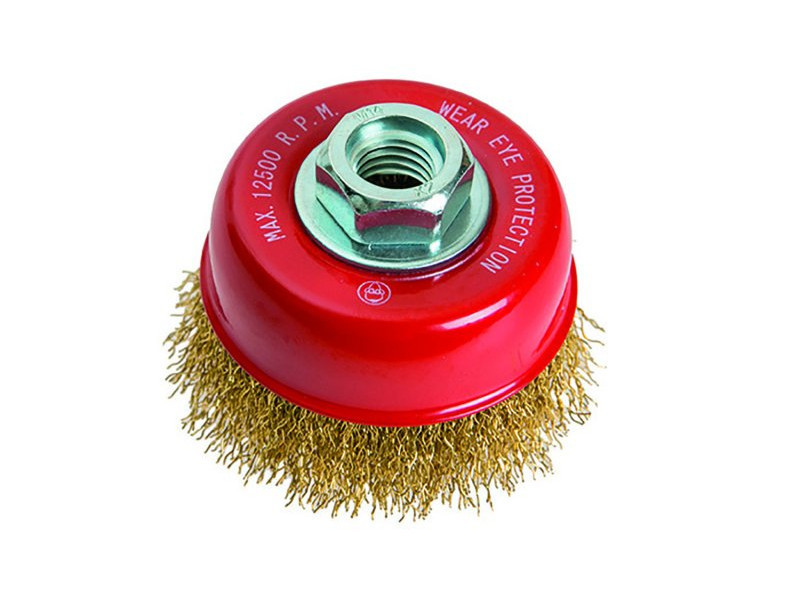Tálkefe sárgaréz hullámos huzalokkal, M14-es rögzítéssel, csésze alakú, rozsdamentes anyagokhoz alkalmas. Oktató videó