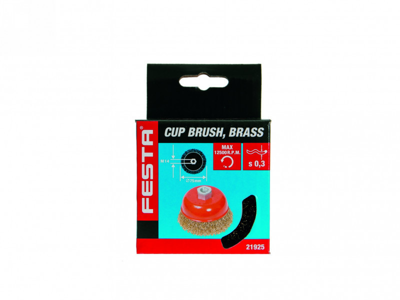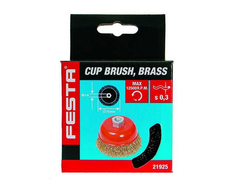 Tálkefe sárgaréz hullámos huzalokkal, M14-es rögzítéssel, csésze alakú, rozsdamentes anyagokhoz alkalmas.