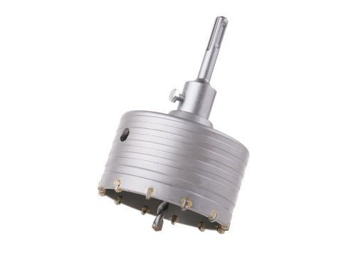 recéző / fúrófej SK pengével és vezetőfúróval SDS+ rögzítés kiváló minőségű SK pengék (SK - szinterezett karbid), hosszú élettartam, az anyag gyors behatolása a vezető-központosító fúró megkönnyíti a munkát és precízen vezeti és a kívánt helyen tartja a koronát nagyobb átmérőjű fúráshoz betonban, pórusbetonban, téglában és hasonló falazóanyagokban a korona nem alkalmas vasbeton fúrására
