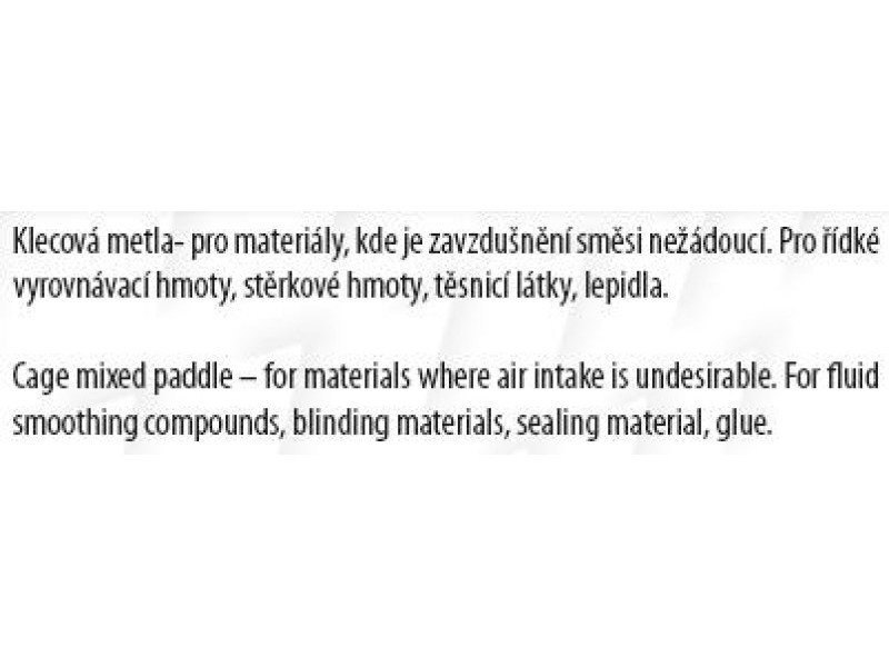 • használat: használt ketreces seprű olyan anyagokhoz, ahol a keverék levegőztetése nem kívánatos - vékony kiegyenlítő anyagokhoz, tömítőanyagokhoz, YTONG ragasztókhoz stb.