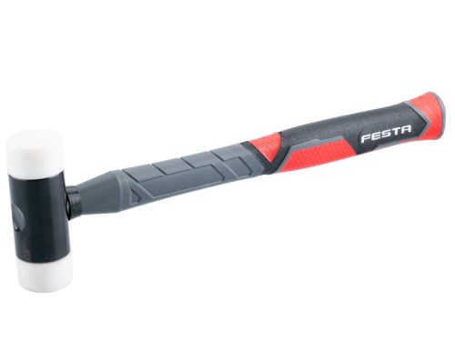 FESTA szerelőpálca masszív nylon ütőfelületekkel, átmérő 34 mm, fém ház, epoxi ragasztóval rögzített minőségi üvegszálas fogantyú, markolatrészben kiváló minőségű TPR gumi, jó csúszásmentes tapadás. Alkalmas lemezmegmunkáláshoz, autóipari bütykös munkákhoz, alkatrészek ülepítéséhez - az erős nejlon felületek kellő ütést tesznek lehetővé, ugyanakkor nem károsítják az adott alkatrészt, különböző típusú épületek összeszerelésére - csarnokok, faépületek, sátrak stb.