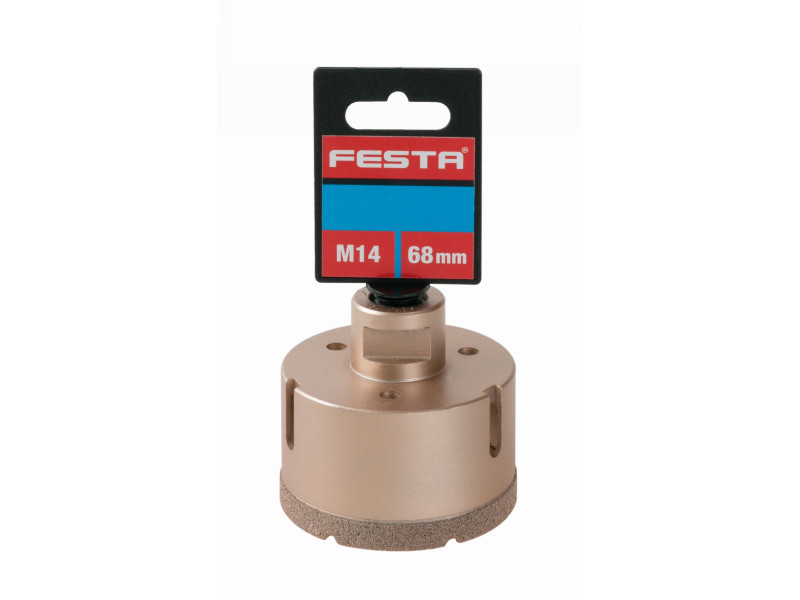 professzionális gyémánt fúrószár M14-es menettel - sarokcsiszolókhoz"száraz"pontos és gyors fúráshoz kőben, burkolatban, csempében, gránitban , márvány és egyéb rendkívül kemény anyagok nem csak az építőiparban gyémánt rétegmagasság 10 mm, hosszú élettartam anélkül, hogy bármilyen segédszerszámot kellene használnia, a kívánt helyen körbeírja a pontos furatot javasolt munkamenet - csavarja fel a koronát közvetlenül a sarokcsiszolófej menetére, húzza meg határozottan kezdje el körbeírni a kívánt furatot 45°-os szögben , a csiszolókorona és a sebessége azonnal biztosítja a rögzítést a kívánt helyen, lassan egyenesítse ki a körkörös mozgás irányát függőlegesbe pozíció egyenletes nyomással,kisebb, 6-14 cm átmérőjű fúrás kemény járdákba, egyes fúrások között, HŰTÉS - csak merítse egy pohár vízbe, vagy hagyja kihűlni a levegőben forradalmak alatt!Oktató videó