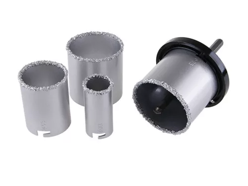 6 keményfém hegyű fúrókészlet a kerámia csempék és csempék tiszta és precíz fúrásához készlet tartalma - univerzális csavarhúzó, speciális vezetőfúró, 33, 53, 67, 73 mm átmérőjű koronák