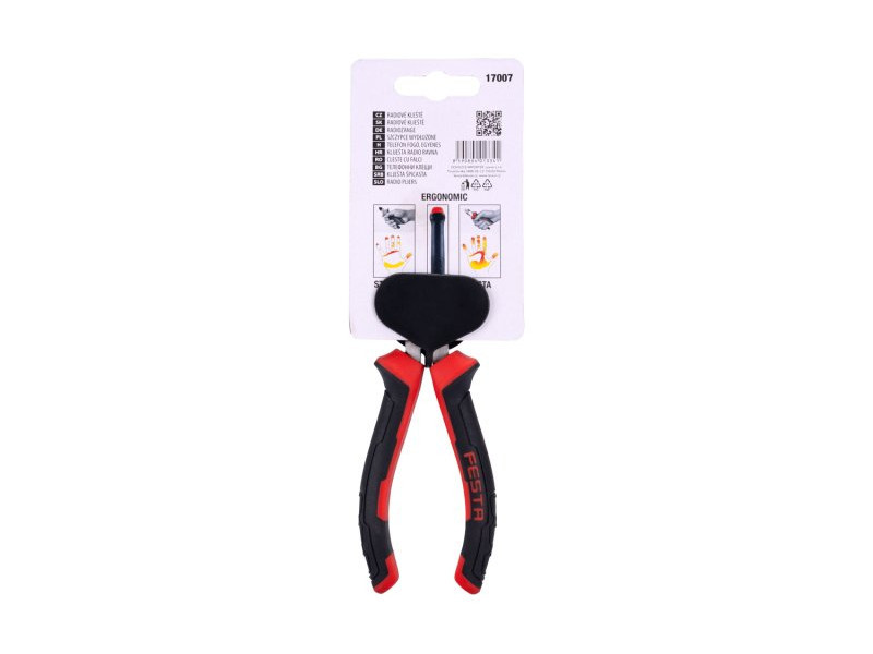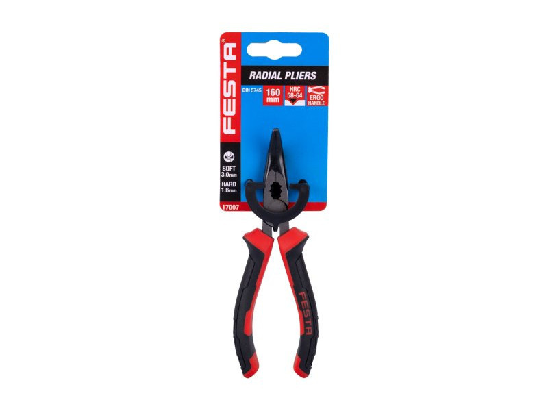 FESTA minőségű rádió hajlított fogó szénacél, indukciósan edzett pofák keménység 50-55 HRC korróziógátló kezeléssel ergonómikus, kétkomponensű, lágyított fogantyúk, 30%-kal nagyobb érintkezés a fogantyúval megfogáskor és nyomáskor – csökkenti a szükséges erőt vékony és ívelt pofák a nehezen elérhető helyekre a gyártó rendelkezik az ISO 90001 tanúsítvánnyal
