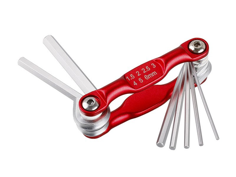 króm-vanádium acél imbuszkészlet méretek 1,5, 2, 2,5, 3, 4, 5, 6 mm praktikus záródizájn - jó minőségű, tartós és könnyű alumíniumötvözetből készült test alkalmas kerékpárosoknak, motorosoknak vagy univerzális kompakt méretkészletnek utazó műhelytáskához - dobozhoz