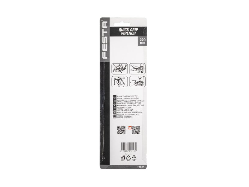 gyorsszorító fogó 220mm - állítható állítható pofák tartománya 35 mm-ig szerszám lapos és kerek anyagok szilárd és gyors önrögzítéséhez a fogó kialakítása nagy szorítónyomást tesz lehetővébefogás és kioldás egy kézzel