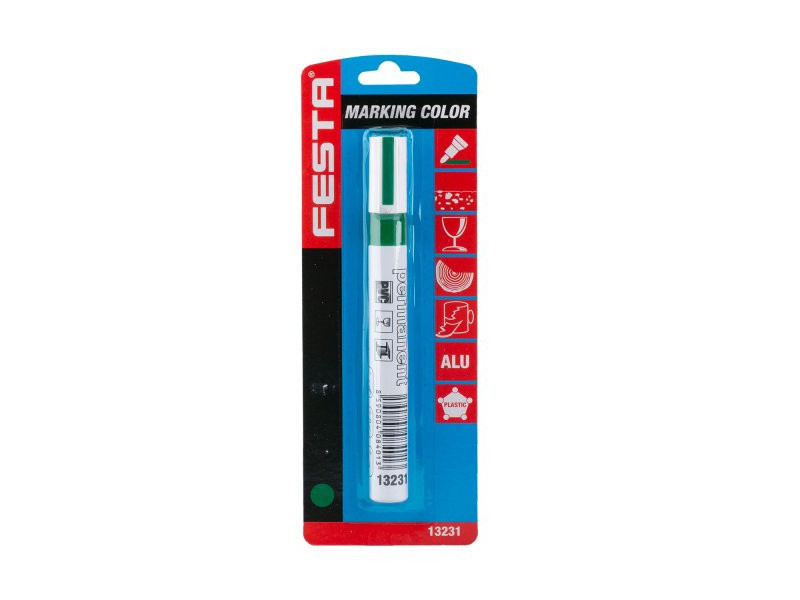 Speciális jelölőfesték alumínium tokban - zöld, vasszerkezetek leírása, üveg, műanyag, fekete sztreccs fólia és sötét aljzat, max 80°C.