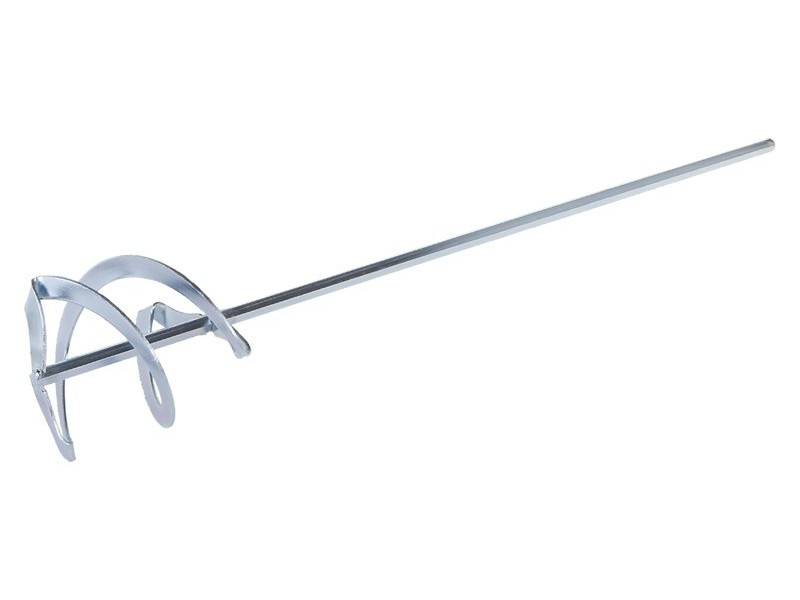 Keverő - spirális (seprű), horganyzott, méret: 90 x 500 mm, felhasználás: a spirálseprűt erősen viszkózus és ragadós anyagokhoz használják, mint például építőipari ragasztók és tömítőanyagok, vakolatok, padlóesztrichek stb., az anyag alulról folyik a felszínre.