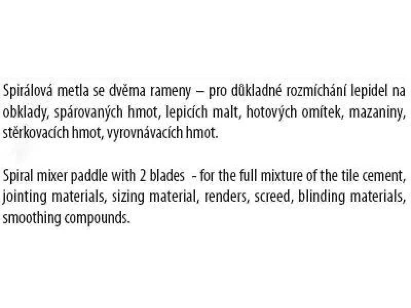 Kör nélküli keverő (seprű), horganyzott, méret: 70 x 500 mm - hatszög, felhasználás: csemperagasztók, fugázó anyagok, ragasztóhabarcsok, kész vakolatok, esztrichek, esztrichek, kiegyenlítő anyagok alapos keverésére.