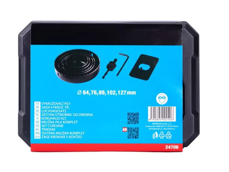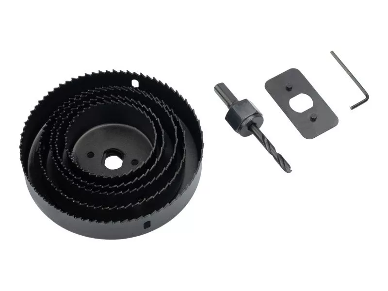 8 db-os körfűrész készlet fához és gipszkartonhoz, átmérő: 64,76,89,102,127 mm, hatlap+fej.