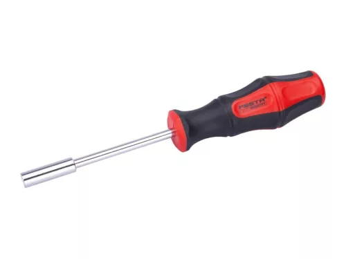 foglalatos csavarhúzó minőségi CrV acél szárral, 1/4"-es hatlapú véggel a bitekhez mágnes a szár belsejében a jobb tartás érdekében bit és rögzítőelemek az ergonomikusan kialakított fogantyúkon a polipropilén és a gumi kombinációja kiváló csúszásgátló tulajdonságokat és jó kenőanyagokkal és vegyszerekkel szembeni ellenállást garantál.