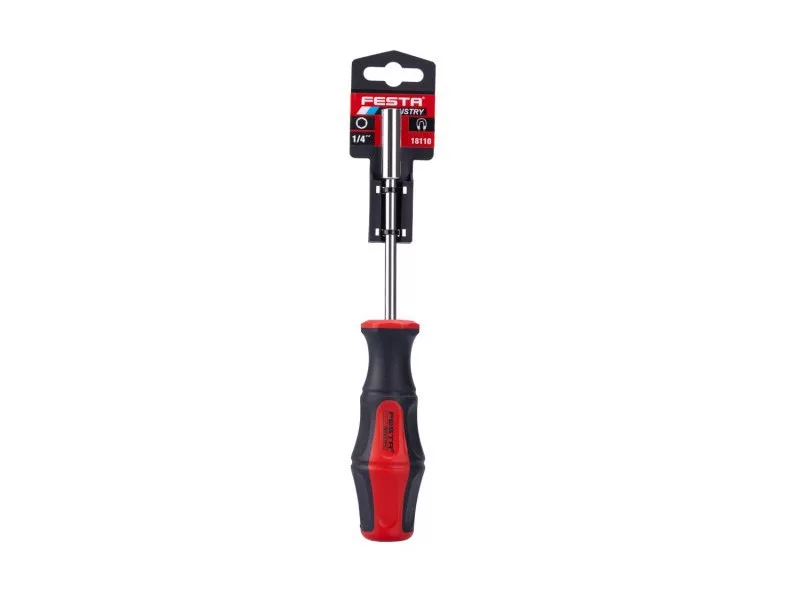 • foglalatos csavarhúzó minőségi CrV acél szárral, 1/4"-es hatlapú véggel a bitekhez