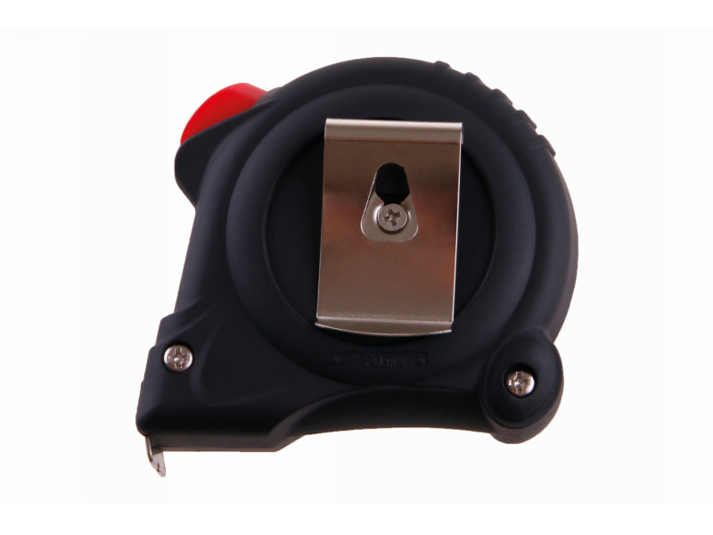 mérőszalag automatikus fékkel edzett szalag, jól leolvasható skála, CE tanúsítvány - kalibrálásra alkalmas mérő ABS műanyagból készült mérőház gumi védelemmel - nagyobb sérülésállóság és jobb stabilitás kezelés közben automata fék a szalagot azonnal mérésre készen tartja, a szalag a gomb megnyomása után feltekercselődik horog lebegő rögzítéssel belső és külső mérésekhez, öv klip