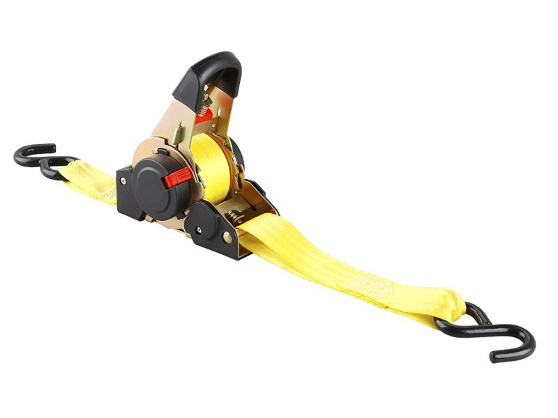 önbehúzódó heveder racsnival és horgokkal feszítő racsnis mechanizmus biztonsággal kétoldalas horgos rögzítés az önfeltekercselő szíj előnyei - kompakt méretek, gyors kezelés, tárolás rakomány rögzítésére szállítás közben, használható sátrak, állványok horgonyozására és rögzítésére, vagy vitorlák rögzítésére takaráskor stb.