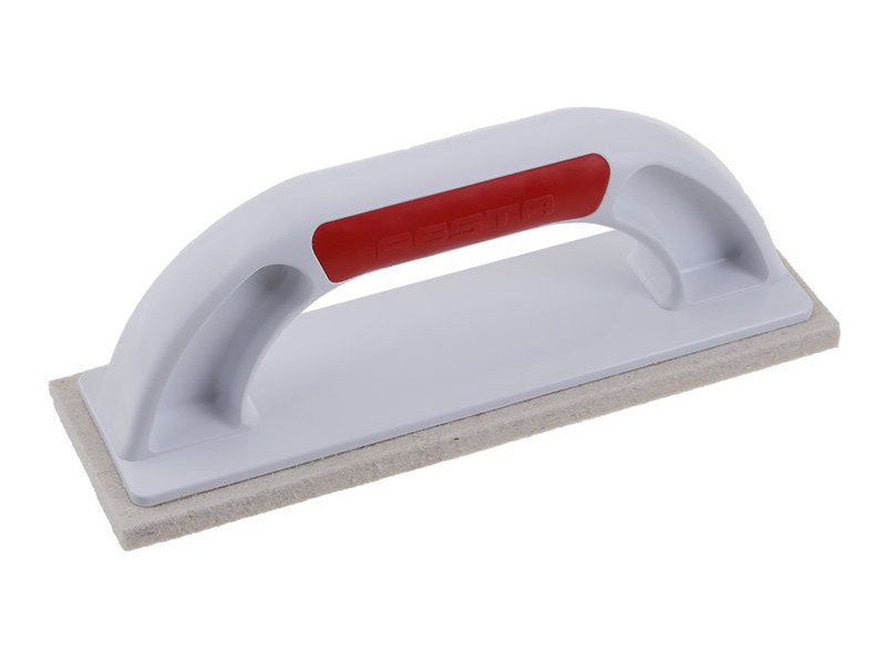FESTA simító fehér filccel, jó minőségű műanyag talp ergonomikus nyéllel, méret: 220 x 70 x 10 mm, felhasználás: finomvakolat összehasonlításához, finomabb vakolatszemcsékhez, felületösszetétel 95% gyapjú, sűrűség - 0,25 g/cm3 (+- 10%)