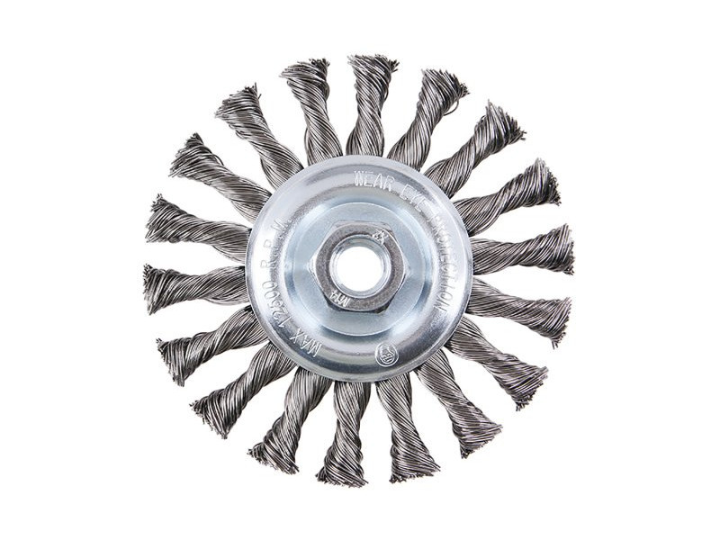 Forgókefe - radiális, változat: COPY - szabadalmaztatott huzal 0,5 mm - másolás, extrém terhelés esetén sem bomlik ki, FESTA kefék garantálják a kiváló minőségű felhasznált anyagokat és megmunkálást, átmérő 115 mm, menet M14x2mm, horganyzott kefetest, vezetékek száma: 900, huzalhossz: 27 mm, megengedett fordulatszám: 12500 1/min, felhasználás: festék, rozsda, sorja, hegesztési maradványok, salak eltávolítása, érdesítés, fém alkatrészek tisztítása, csomagolás: papírdoboz eurolyukkal.
