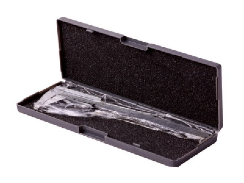 Tolómérő 0 - 150 mm 0,02 mm-es pontossággal, metrikus skála mm-ben, mélységmérő, kiváló minőségű rozsdamentes acél, precíz megmunkálás, egyenletes mozgás, csavaros rögzítés - stabilabb méretátadásra alkalmas, mértékegység-átszámítási táblázat, műanyag ügy.