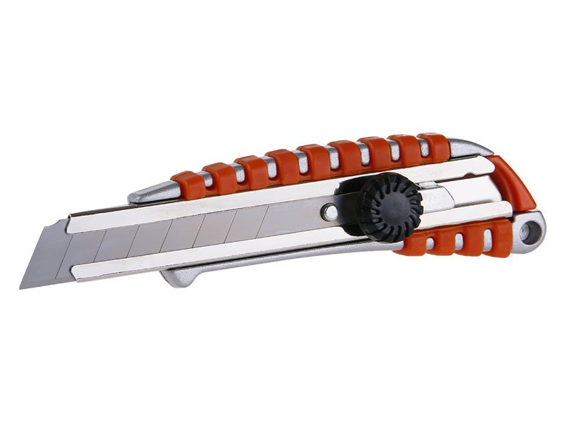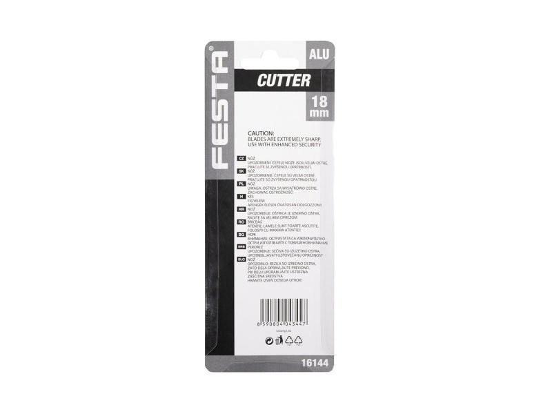 FESTA 18mm-es vágókés, minőségi anyagok, teljesen fém késtest, csúszásmentes műanyag kiemelkedések, fém rúd, tartós csavaros zár, akár 2 db tartalék penge helyezhető a késbe, buborékfólia.