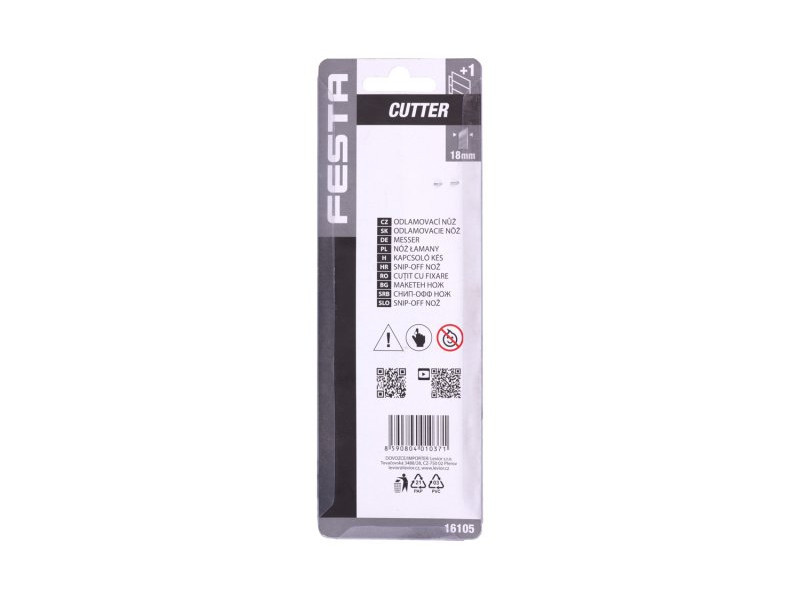 FESTA vágókés 18mm, minőségi anyagok, fém rúd, automata reteszelés biztosítékkal, akár 3 db tartalék penge helyezhető a késbe, buborékfólia.