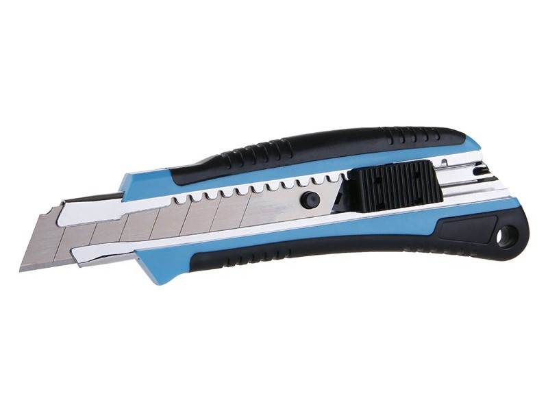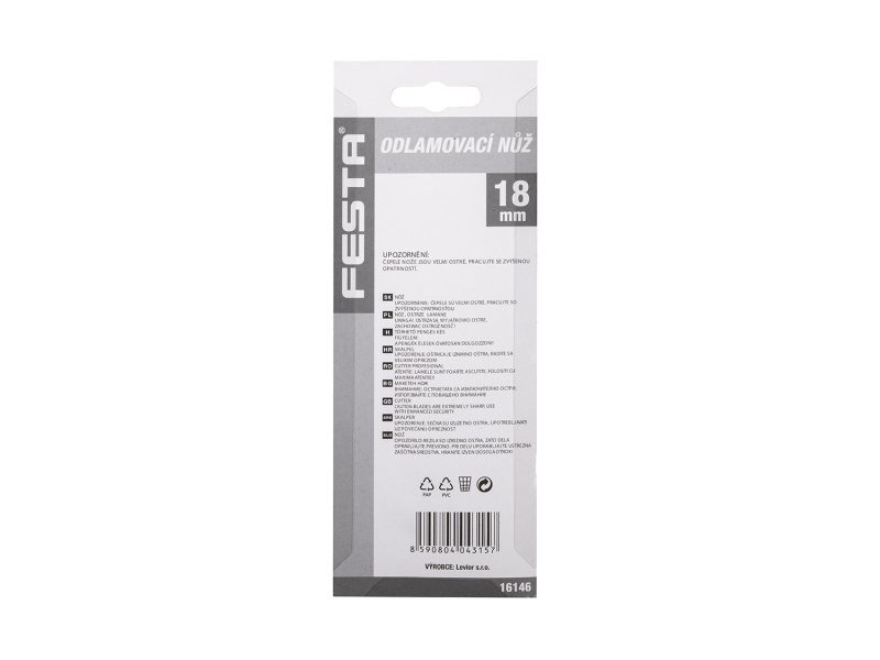 FESTA vágókés 18mm, minőségi anyagok, ergonomikus forma csúszásgátló kezeléssel, fém rúd, automata tolózár, a késbe akár 2 db tartalék penge helyezhető, buborékfólia.